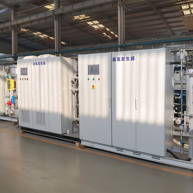 臭氧发生室内的高频高压电场内,部分氧气变成臭氧,产品气体为臭氧化气体,通过出气自动调节阀后排出。每台臭氧发生器出气管道上装有取样阀,连接配套气态臭氧浓度仪,实时检测臭氧出气浓度。