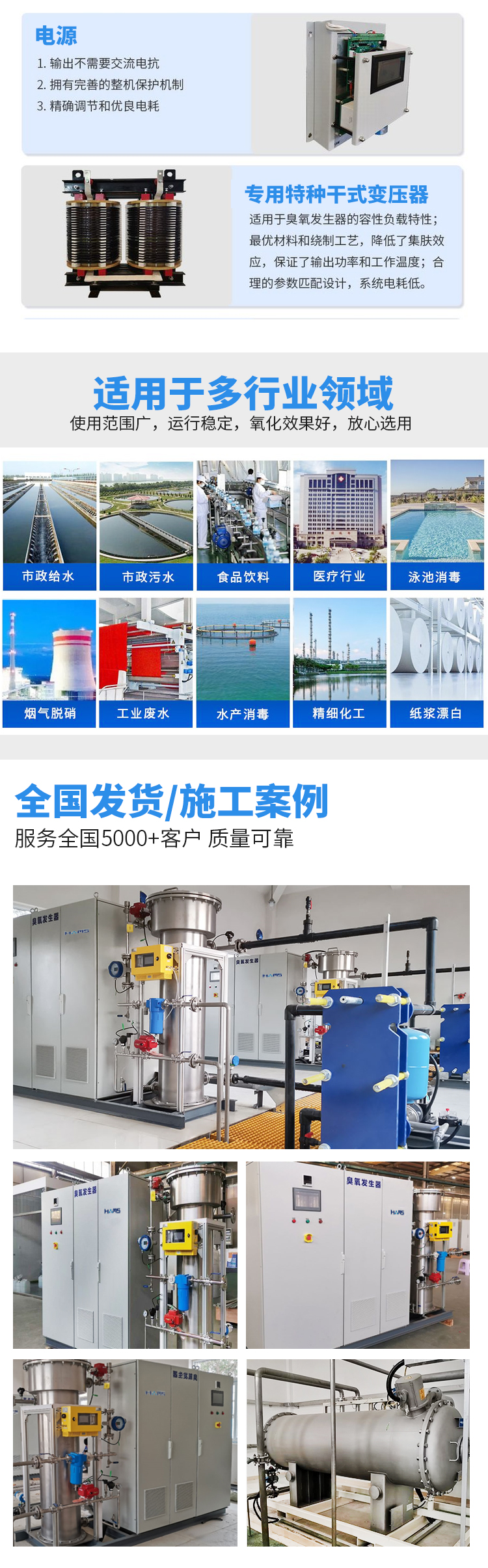 品牌:和创智云 加工定制:是 型号:HCCF 臭氧产量:50-50000 g/h 功率:按规格 w 使用电源:220V/380V 工作温度 :15~25° ℃ 外型尺寸:根据型号 mm 气源:空气源/氧气源 材质:不锈钢 污水脱色除臭降解COD 空气源臭氧发生器