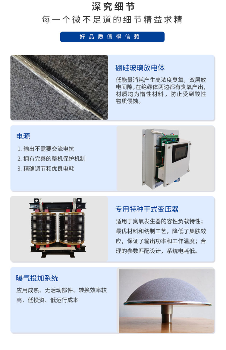 污水处理用臭氧发生器有哪些好处?可以处理哪些水质?臭氧是一种具有强氧化性质的气体,可氧化分解空气中、水中的细菌、*、有机物、无机物、芽孢类、真菌等各种有害物质,氧化分解为无味、无毒的物质。臭氧消毒作用很多,可用于污水处理、自来水消毒、空气消毒、烟气脱硝、果蔬防腐保鲜、粮食储存等等,凡是用到臭氧的地方,都可以使用臭氧发生器,它具有消毒、保鲜、除异味、漂白、脱色、降解COD、杀菌等诸多功能。污水处理用臭氧发生器,消毒彻底、不产生二次污染。臭氧灭菌为溶菌方法,杀菌彻底,无残留,杀菌广谱,臭氧发生器消毒不需要其他任何辅助材料和添加剂。