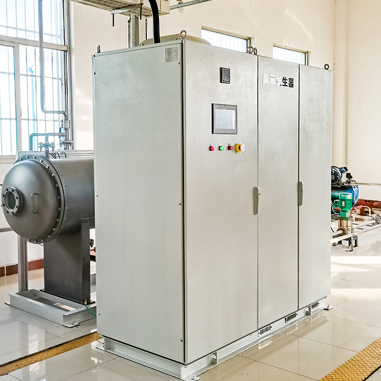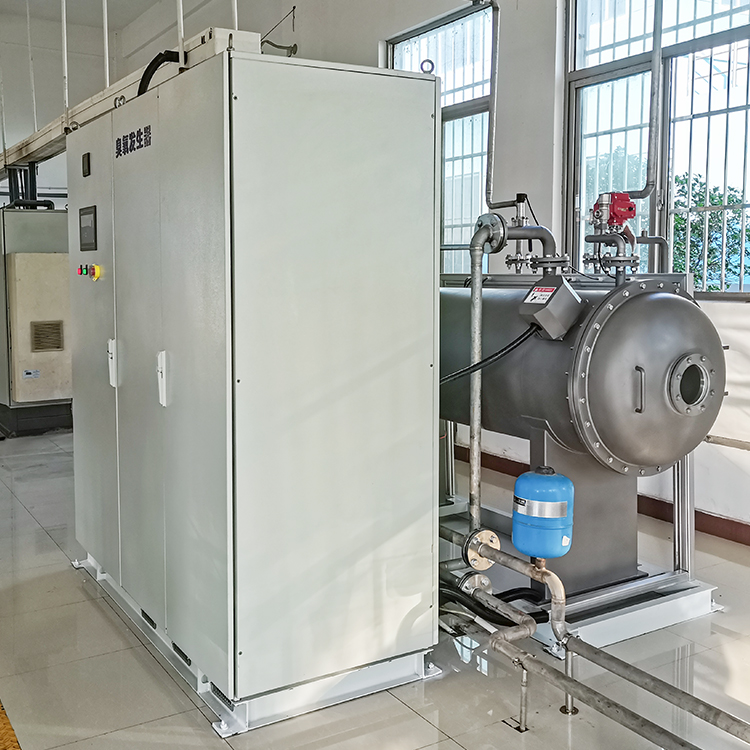3、臭氧发生器采用水冷却,通过满足质量要求的足量的冷却水有效地带走电晕放电时放出的热量,冷却水可循环使用并通过外部工艺降温。